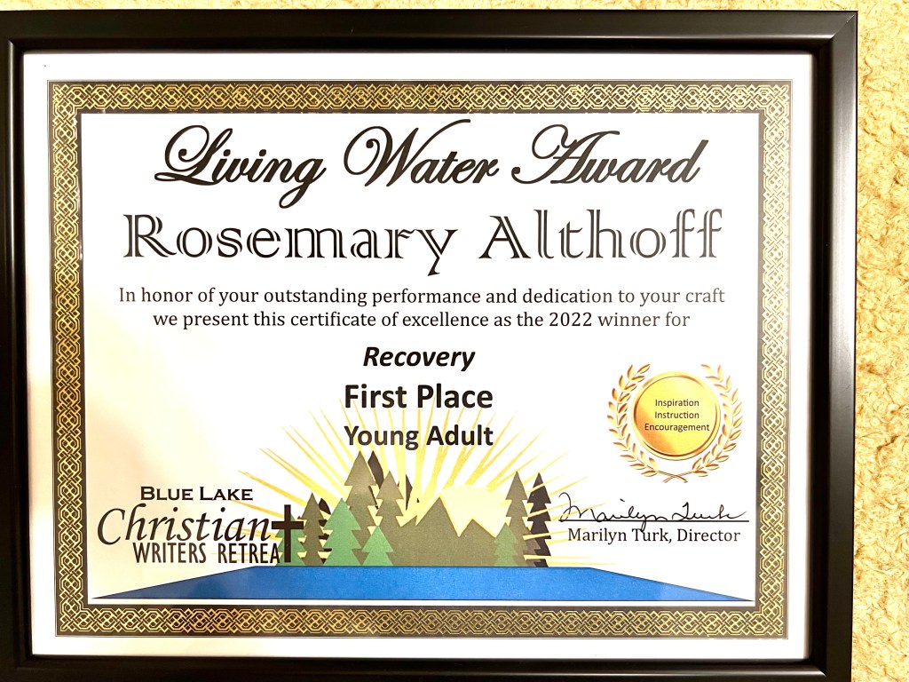 The Hot Marble won 2nd place in the YA division of the 2020 Living Water Awards